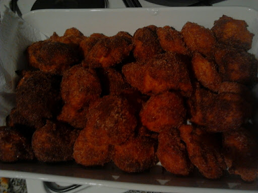 Depois de fritos passe por açúcar e canela a gosto (junte os dois num prato para ficar mais homogéneo).